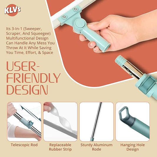 Floor Wiper Magic Broom Silicone Cleaning Tool – KLVS Heavy-Duty Extendable Handle for Bathroom, Kitchen, Windows & Tiles